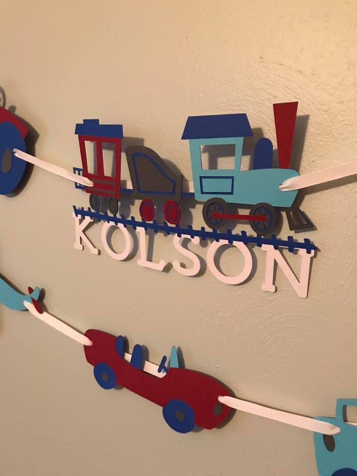 Great for a vehicle themed birthday party or baby shower. The banner can be personalized to include the name of the guest of honor. The colors and vehicle types can be changed to fit your theme.